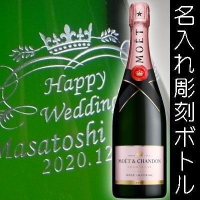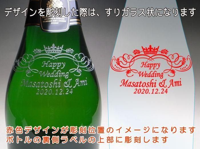 モエ エ シャンドンのボトルは名入れのオリジナル彫刻に、シルバー着色加工を施して美しく仕上げます。 大切な方の結婚祝いや誕生日などの乾杯に個性的で世界に一つだけのオリジナルプレゼントをお届けします♪